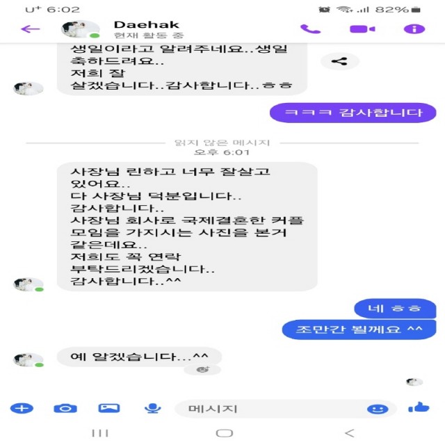이렇게 감사문자를 받으니 기쁩니다!